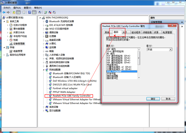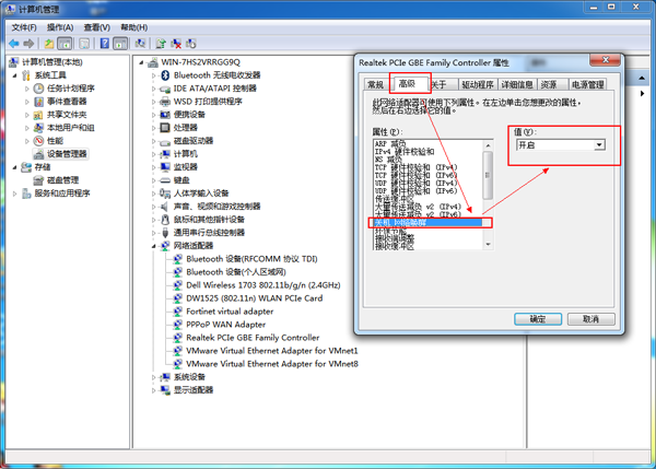 第四步:然后選擇“屬性”里的“關機 網絡喚醒”,在右側的“值”中選擇“開啟”,然后確定就行了。