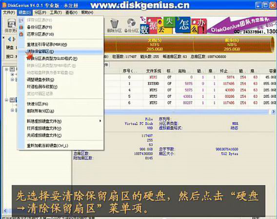 了解原理后,就好解決了,只要清除0-62(從0開始編號)的活動扇區(qū)數(shù)據(jù)即可,當(dāng)然對硬盤低格肯定可以解決,不過對硬盤有傷害,不到萬不得已不建議低格,下面介紹使用DiskGenius清除保留扇區(qū)的方法。