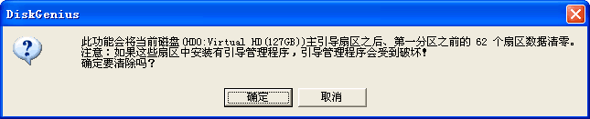 點(diǎn)擊“確定”按鈕以執(zhí)行清除保留扇區(qū)的功能。(本功能不適用于使用GUID分區(qū)表的GPT磁盤。)