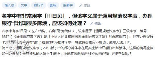 比如在知乎上就有人求助:“?日見”(?是漢字結(jié)構(gòu)描述符之一,表示左右結(jié)構(gòu))這個(gè)字怎么打?然而普通的輸入法只能輸入繁體的“晛”,并不能輸入其簡(jiǎn)體字。