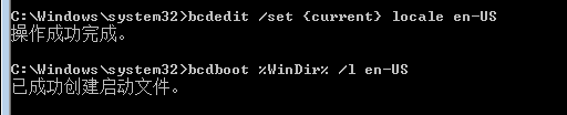 bcdedit /set {current} locale en-US (安裝其他語言,請自行根據情況替換en-US)